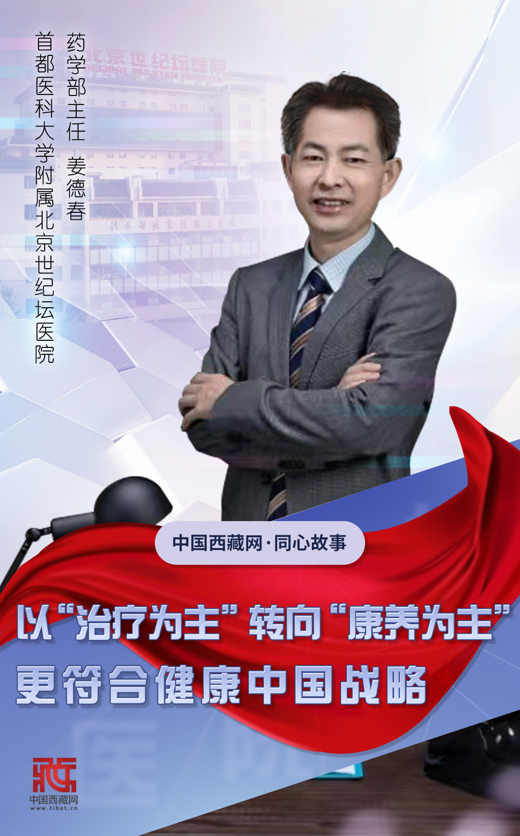 姜德春認(rèn)為,我們國家實施的“健康中國”戰(zhàn)略就是要以健康為主。以前我們醫(yī)療模式是以“治療為主”,現(xiàn)在開始從“治療為主”向“預(yù)防為主”轉(zhuǎn)變,保持健康就是一種預(yù)防的狀態(tài)。通過康養(yǎng)獲得更高水平的生活質(zhì)量,這是人民對健康的需求,也是實現(xiàn)“健康中國”戰(zhàn)略的最大目標(biāo)。作為藥師,他認(rèn)為從“治療為主”轉(zhuǎn)向“康養(yǎng)為主”是符合時代發(fā)展,實現(xiàn)健康中國的一個非常重要的舉措,意義深遠(yuǎn)。(中國西藏網(wǎng) 記者/趙振宇 曹美晴 海報設(shè)計/郝蕊)