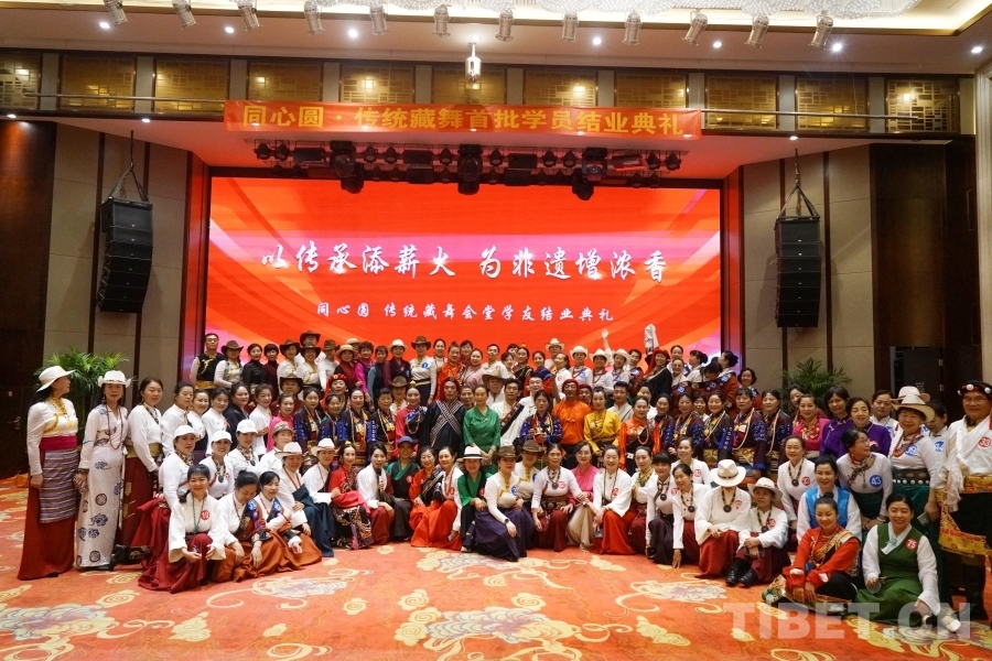 中國(guó)西藏網(wǎng)訊 5月9日,由同心圓傳統(tǒng)藏舞會(huì)堂舉辦的“為傳承添薪火 為非遺增濃香”傳統(tǒng)藏舞首批學(xué)員結(jié)業(yè)典禮在陜西西安舉行。22名學(xué)友經(jīng)過一年多的辛勤努力終于迎來了結(jié)業(yè)典禮,同時(shí)現(xiàn)場(chǎng)還為9名優(yōu)秀學(xué)員頒發(fā)推廣人證書。