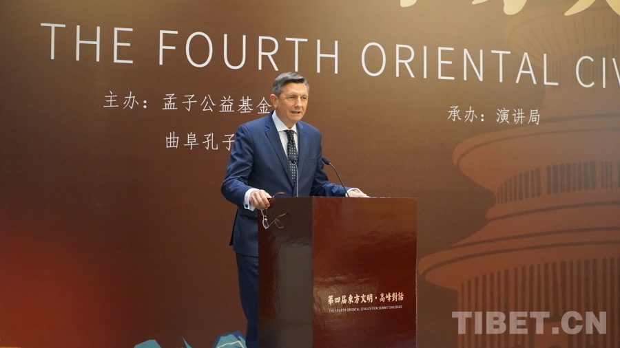 中國西藏網(wǎng)訊 5月15日,以“孟子智慧:文明交流互鑒,奔向人類命運共同體”為主題第四屆東方文明高峰對話在北京舉行。斯洛文尼亞前總統(tǒng)博魯特·帕霍爾、世界孔子宗親聯(lián)誼總會執(zhí)行會長孔眾、北京師范大學(xué)中國易學(xué)文化研究院院長張濤等嘉賓分別作主旨發(fā)言。
