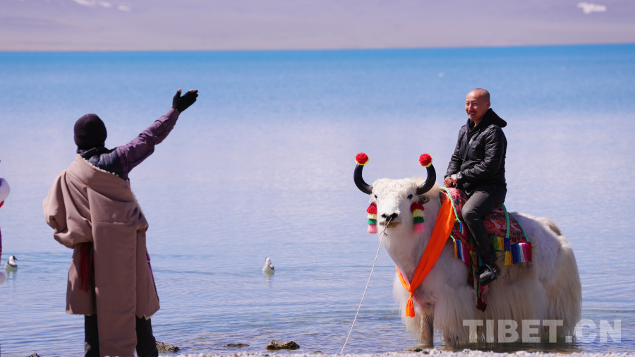 當(dāng)天納木錯(cuò)湖畔來客爆滿,他們穿梭在各大帳篷體驗(yàn)來自拉薩市8個(gè)縣(區(qū))獨(dú)特的民風(fēng)民俗和特色美食、騎著白牦牛與山水合影、向海鷗投食……在限有的時(shí)間里人們將納木錯(cuò)的美景盡收眼底。自駕游客帶隊(duì)人袁勇對(duì)記者說:“今天是我們自駕游的第十天,我們一行8個(gè)人開了兩千多公里的車從甘肅平?jīng)龀霭l(fā),經(jīng)過康定、巴塘、理塘、拉薩,最終來到了美麗的納木錯(cuò)。來納木錯(cuò)在計(jì)劃之內(nèi),遇到盛大的開湖日活動(dòng)是一次很偶然機(jī)會(huì),納木錯(cuò)的景色讓人震撼,以后我會(huì)帶著更多人來西藏,來納木錯(cuò)。”