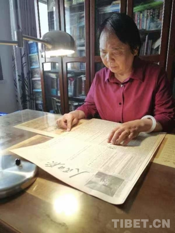 圖為慕曉峰在翻閱當年人民日報關于青藏公路的報道 受訪者供圖