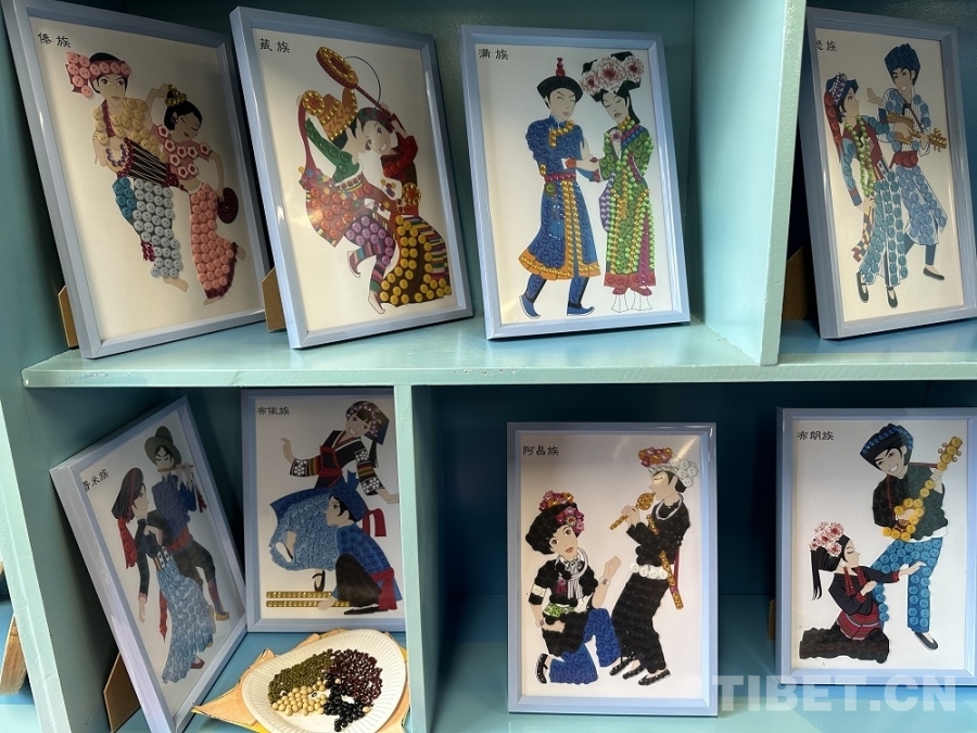 圖為學(xué)生們制作的展示各民族人物形象的手工作品