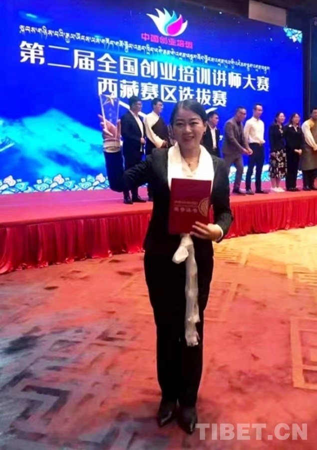 圖為付燕在第二屆全國(guó)創(chuàng)業(yè)培訓(xùn)講師大賽西藏賽區(qū)選拔賽中獲獎(jiǎng)