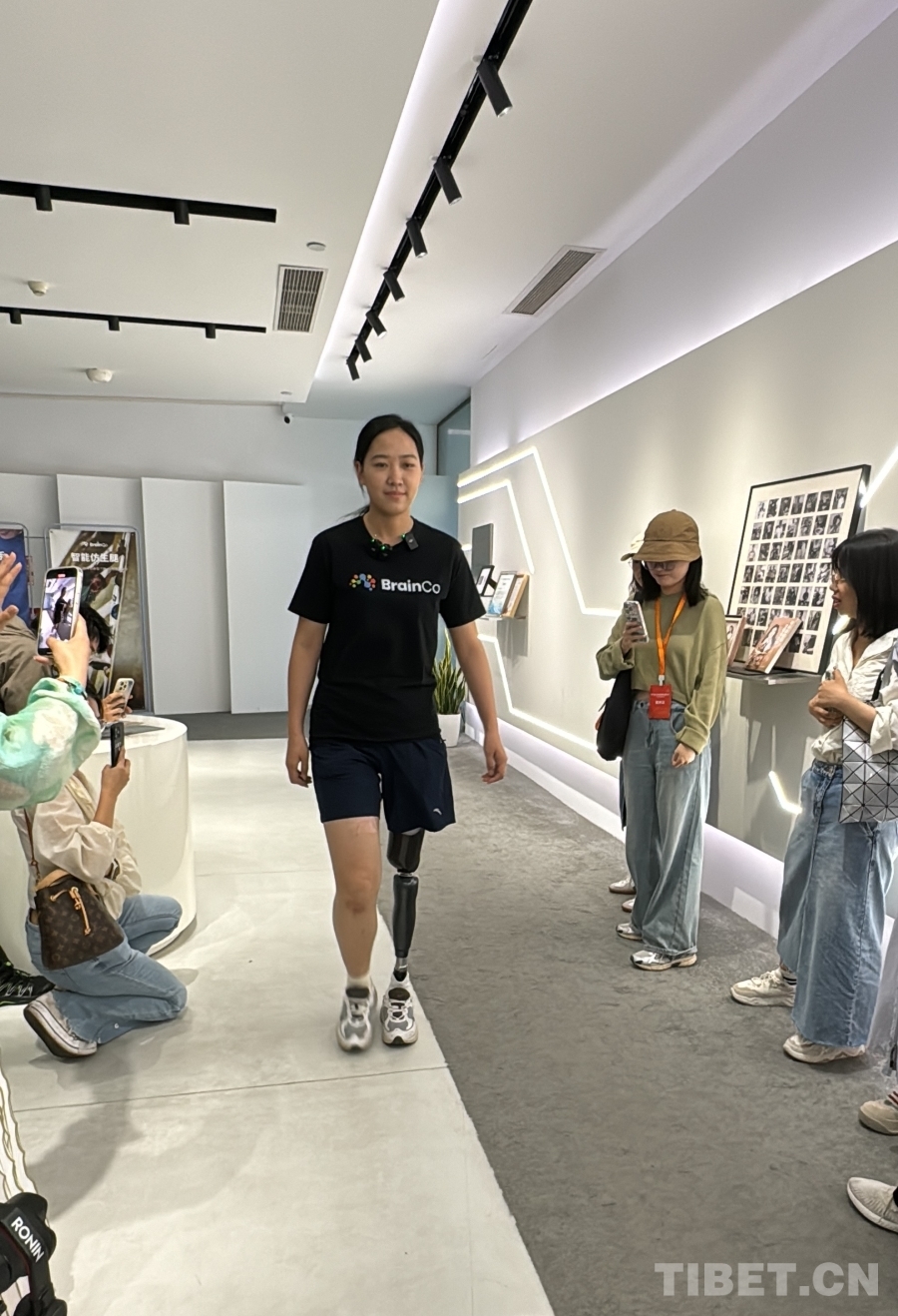 圖為BrainCo強腦科技產(chǎn)品體驗官高瑞霞在自信地走路