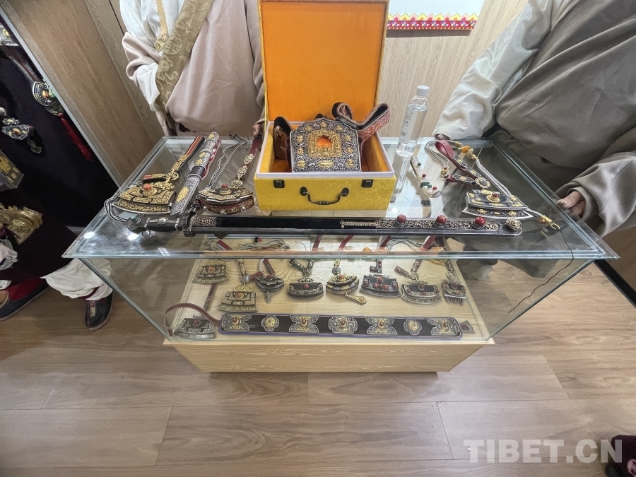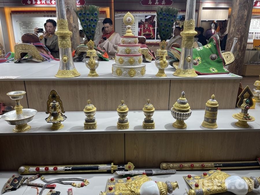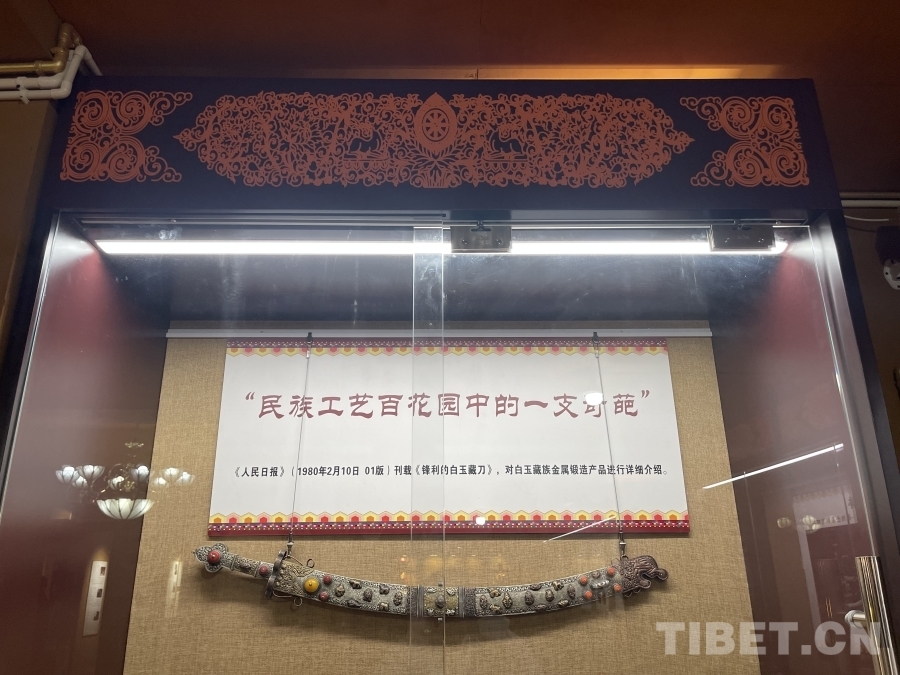 在傳習所的展廳內(nèi),各式各樣的金屬鍛造工藝品琳瑯滿目。其中,一把工藝精湛的藏刀吸引了眾人的目光。據(jù)講解員介紹,這把藏刀曾在1980年2月10日《人民日報》第一版刊載的《鋒利的白玉藏刀》上被譽為“民族工藝百花園中的一支奇葩”。白玉縣河坡鎮(zhèn)的金屬鍛造技藝分為七大類,刀具作為最具特色和知名度的產(chǎn)品,深受人們喜愛。