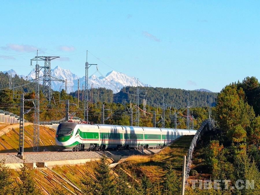 圖為復(fù)興號(hào)動(dòng)車組行駛在滇藏鐵路麗香段上 迪慶日報(bào)社供圖