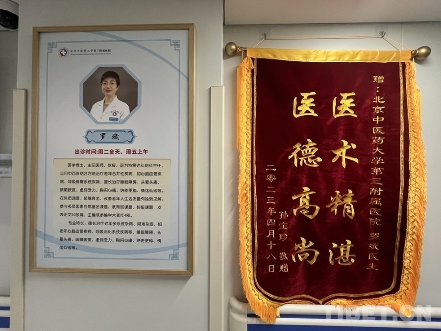 圖為北京中醫(yī)藥大學(xué)第三附屬醫(yī)院老年科住院部樓內(nèi)懸掛的錦旗 攝影:王茜