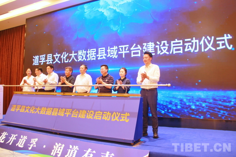 圖為“花開道孚 潤道有聲”道孚縣文化傳承發(fā)展座談會上舉行了道孚縣文化大數(shù)據(jù)縣域平臺建設(shè)啟動儀式 攝影:劉莉