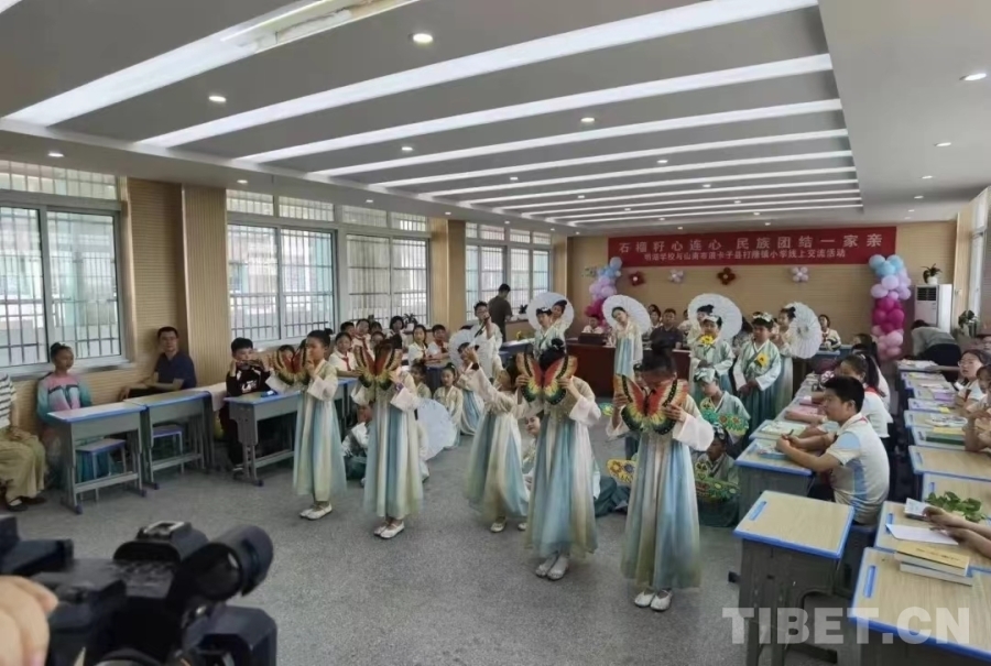 通過開展活動聯(lián)誼豐富交流內(nèi)容打造特色活動品牌,圍繞民俗文化、人文地理、美食美景等內(nèi)容交流互動,學生穿著民族服飾,互學方言共同表演經(jīng)典誦讀《上春山》、古箏表演《三字經(jīng)》《國風美少年》、鍋莊表演《強巴曲?!返裙?jié)目,展示了中華民族優(yōu)秀傳統(tǒng)文化,進一步增進學生之間的文化交流不斷增強學生“五個認同”。