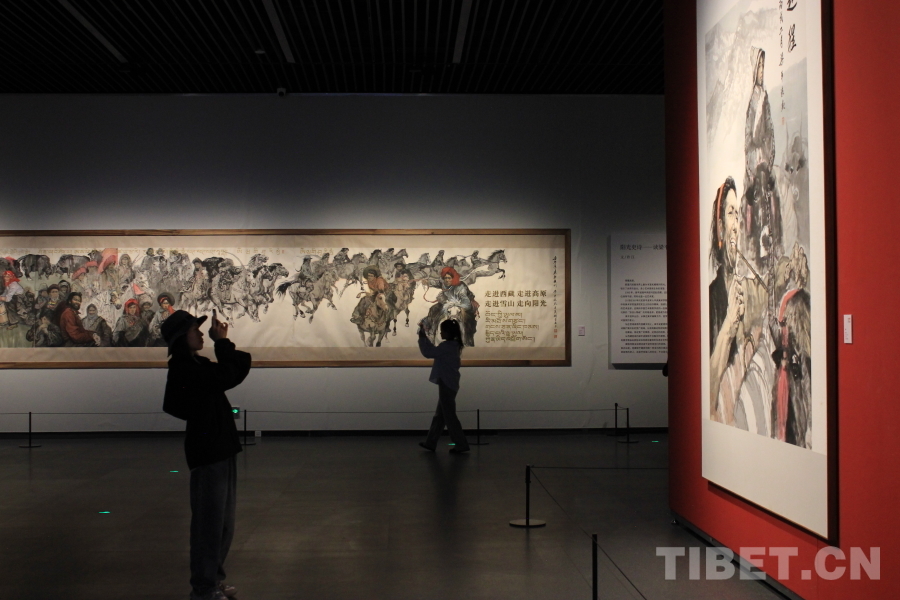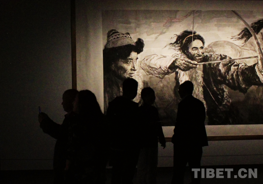 段勝前表示,此次展出梁平波先生的28幅西藏主題系列國畫作品,對人物的描繪惟妙惟肖、栩栩如生,作品大氣磅礴、令人震憾,極有感染力和穿透力,極具酥油味和糌粑香,生動再現(xiàn)了今日西藏各族人民樂觀向上的精神風(fēng)貌,真實還原了西藏人民生生不息頑強(qiáng)奮斗的精神力量,誠摯表達(dá)了對西藏這片藍(lán)天凈土的深厚情感,深深寄托了我們對偉大祖國的美好祝愿。希望以此次展覽為契機(jī),吸引更多的藝術(shù)家走進(jìn)西藏、了解西藏、宣傳西藏,進(jìn)一步促進(jìn)兩地文藝廣泛交往全面交流深度交融。