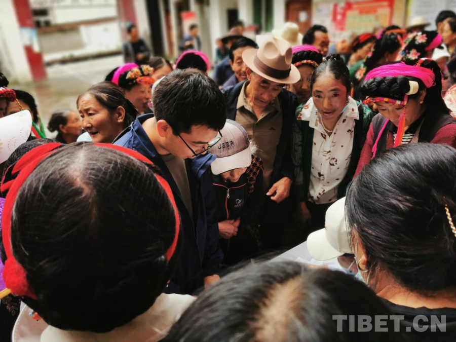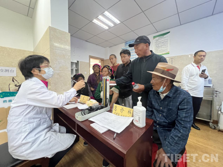 圖為急診科專家為當(dāng)?shù)鼐用窳x診 丹巴縣融媒體供圖