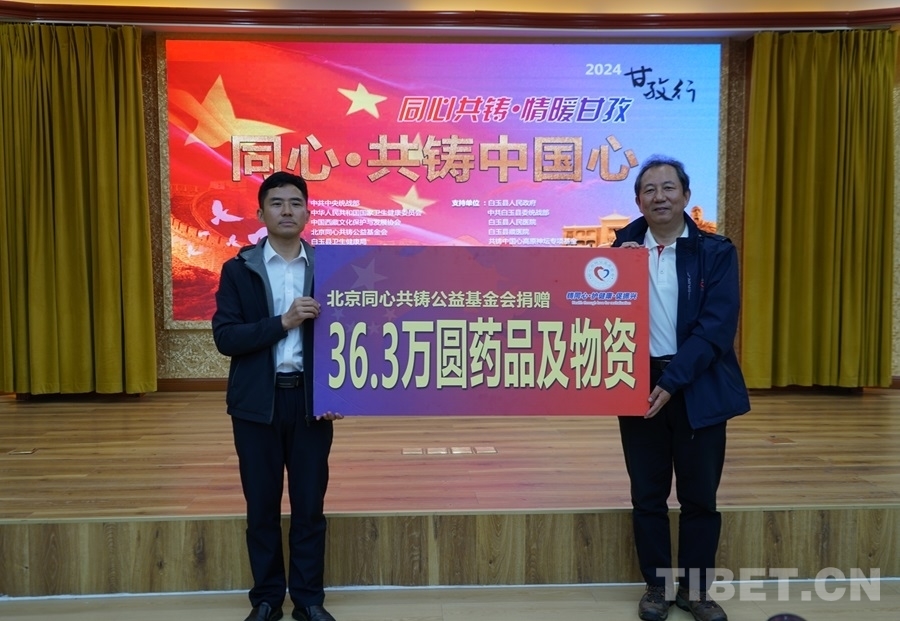 會(huì)議開始,與會(huì)人員一同觀看了“同心共鑄·情暖甘孜——‘同心·共鑄中國(guó)心’2024甘孜行”活動(dòng)直播。隨后,白玉縣委書記劉堰,專家團(tuán)團(tuán)長(zhǎng)、清華長(zhǎng)庚醫(yī)院神經(jīng)外科主任醫(yī)師王貴懷分別致辭?,F(xiàn)場(chǎng)還舉行了捐贈(zèng)儀式和授旗儀式。