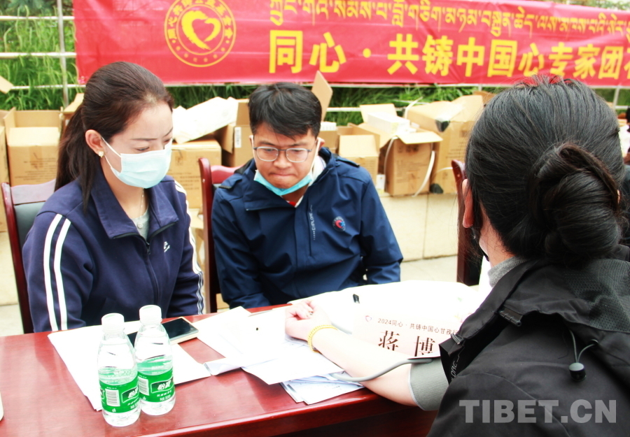 圖為2024“同心·共鑄中國心”甘孜行大型公益活動石渠縣義診現(xiàn)場,中國人民解放軍總醫(yī)院第一醫(yī)學(xué)中心心血管內(nèi)科副主任醫(yī)師蔣博正在觀察患者血壓 攝影:劉莉