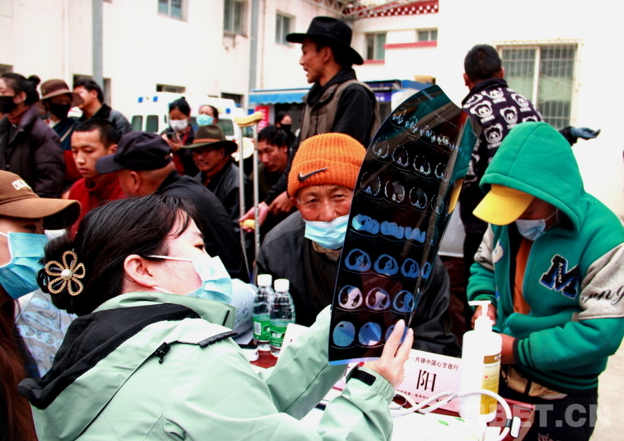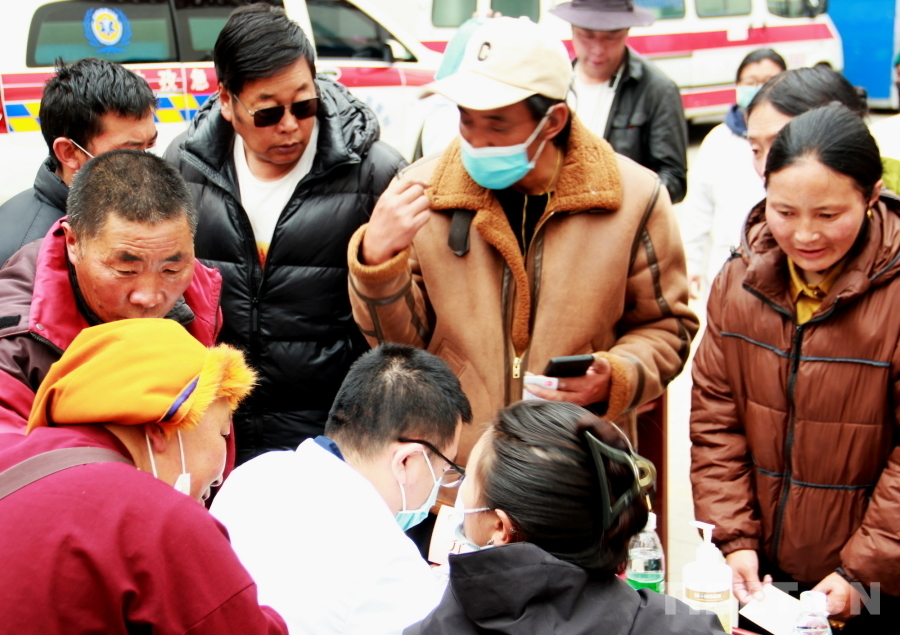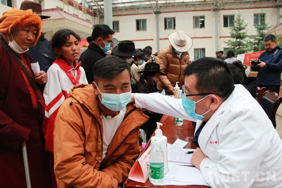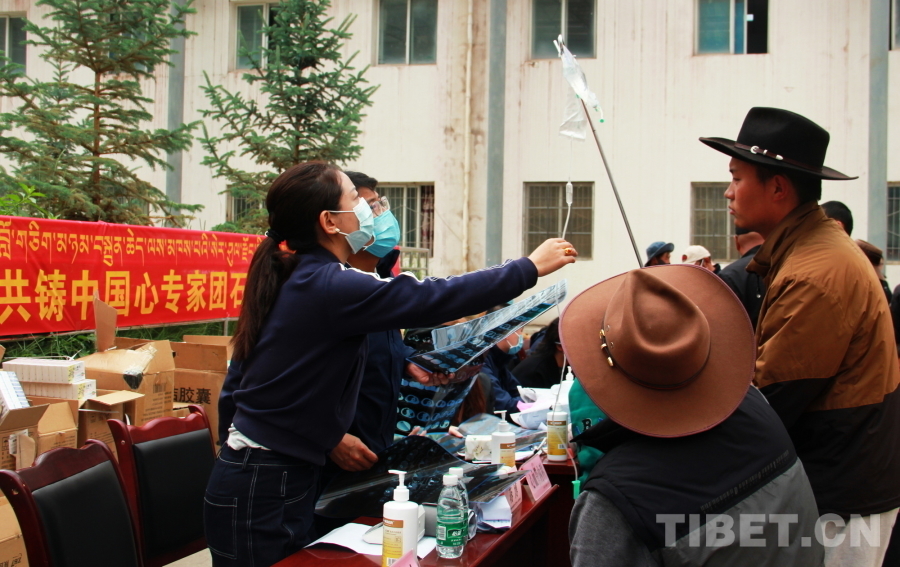 由于石渠縣海拔較高,參加義診的醫(yī)療專家們普遍發(fā)生頭暈、心悸等高原反應(yīng),有的血氧濃度甚至不到70%。在前往義診現(xiàn)場的車上還吸著氧的他們,見到這么多群眾排隊候診,顧不上身體不適,迅速投入到了診療工作中。