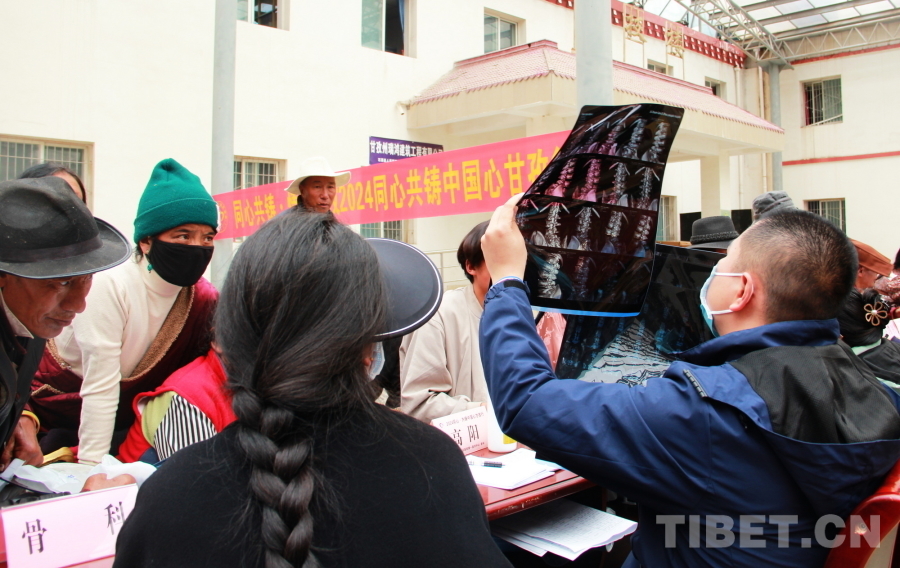 圖為2024“同心·共鑄中國心”甘孜行大型公益活動石渠縣義診現(xiàn)場,中國人民解放軍總醫(yī)院第一醫(yī)學(xué)中心骨科副主任醫(yī)師高陽正在查看患者帶來的片子 攝影:劉莉