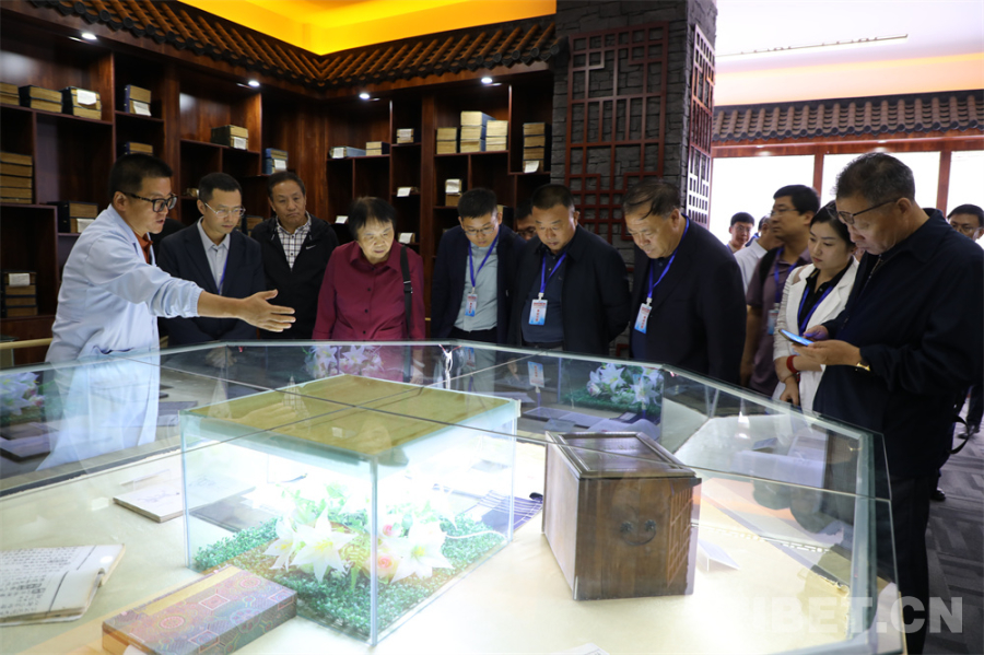 中國西藏網(wǎng)訊 7月10日,傳承弘揚(yáng)“兩路”精神暨交通變遷與青藏高原現(xiàn)代化研討會(huì)青海分會(huì)在西寧舉辦。會(huì)議期間,“青藏公路之父”慕生忠將軍的女兒慕曉峰、莫河駝場相關(guān)負(fù)責(zé)人以及來自青海省委黨校、青海省社科院、青海民族大學(xué)、山西大學(xué)等單位的與會(huì)人員來到青海民族大學(xué)古籍館,參觀了入選《國家珍貴古籍名錄》的館藏珍貴古籍展覽,并認(rèn)真聆聽古籍館相關(guān)負(fù)責(zé)人的詳細(xì)講解,近距離感受了中國古籍的版本之美、紙張之美、刻印之美。
