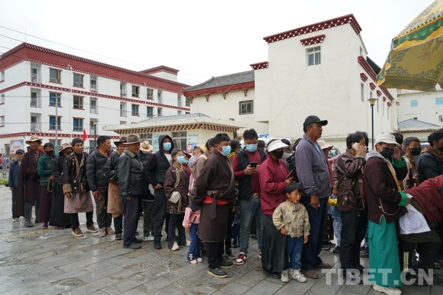 圖為7月9日,群眾在白玉縣昌臺(tái)中心衛(wèi)生院義診點(diǎn)排隊(duì)等待掛號(hào) 攝影:周晴晴