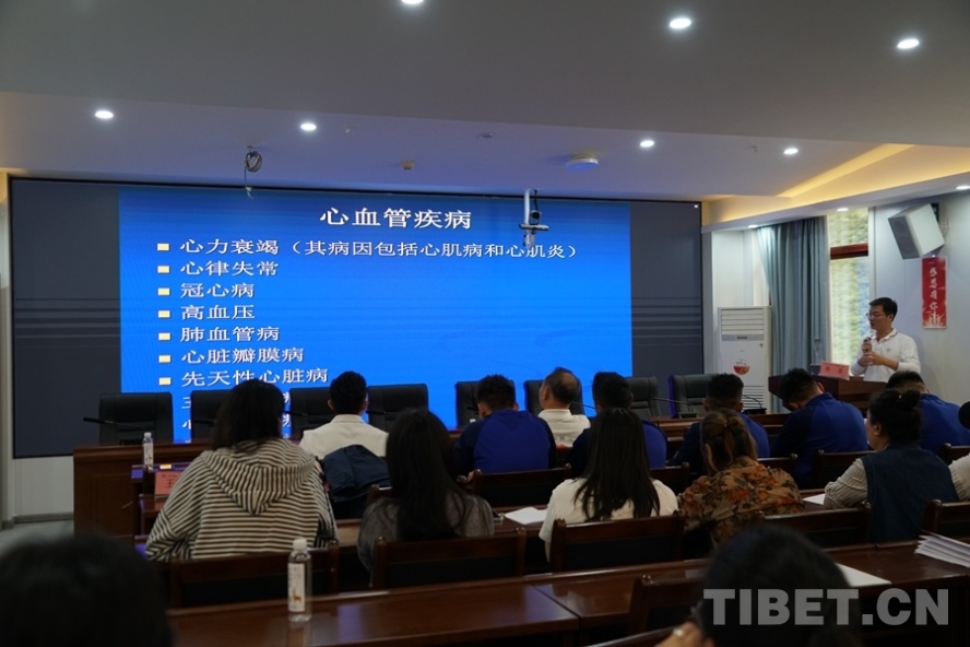 圖為專家團(tuán)執(zhí)行團(tuán)長、清華大學(xué)第一附屬醫(yī)院副院長胡暢作“同心·共鑄中國心”甘孜行白玉縣義診工作總結(jié)報(bào)告 攝影:周晴晴