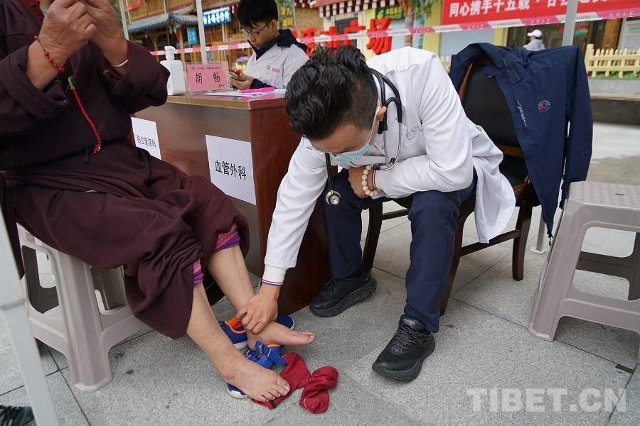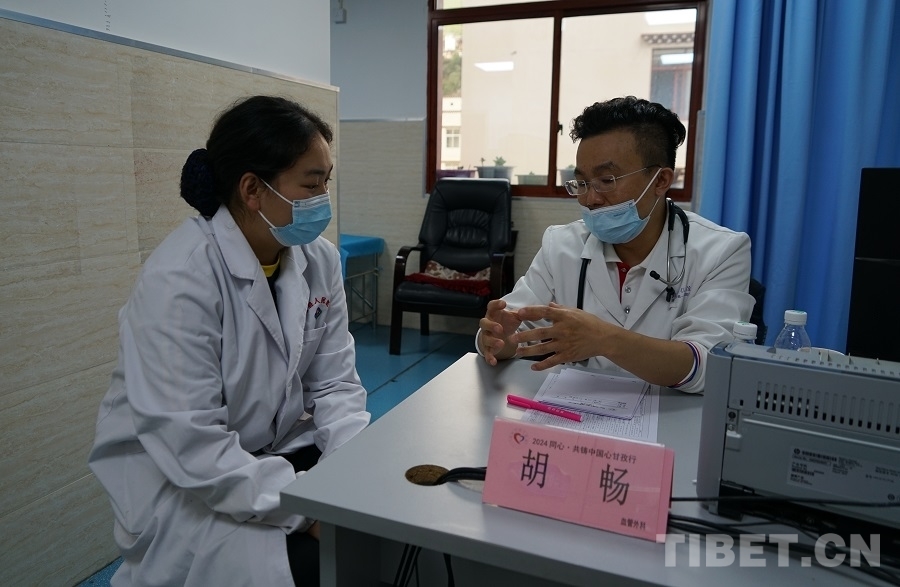 7月6日傍晚,歷經(jīng)一整天的奔波后,胡暢所在的“同心·共鑄中國(guó)心”甘孜行白玉縣醫(yī)療專(zhuān)家團(tuán)抵達(dá)白玉縣城。在接下來(lái)七天的幫扶活動(dòng)中,胡暢先后在白玉縣新時(shí)代文明實(shí)踐廣場(chǎng)、縣人民醫(yī)院、昌臺(tái)片區(qū)阿察鎮(zhèn)、河坡鄉(xiāng)中心小學(xué)等地義診,并在縣人民醫(yī)院為到場(chǎng)的當(dāng)?shù)蒯t(yī)護(hù)人員和消防隊(duì)員開(kāi)展了一場(chǎng)以血管外科為主題的健康科普講座。活動(dòng)期間,一聲聲道謝,一條條哈達(dá),一張張笑臉,道不盡的是患者們的感激,凝結(jié)的是胡暢與甘孜白玉再也割舍不斷的情感聯(lián)結(jié)?!霸诮诸^和群眾相遇,他們知道我們是北京過(guò)來(lái)的義診醫(yī)生,很歡迎我們,會(huì)微笑著和我們打招呼,讓人覺(jué)得很溫暖?!?nbsp;