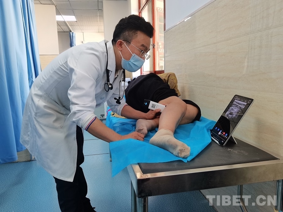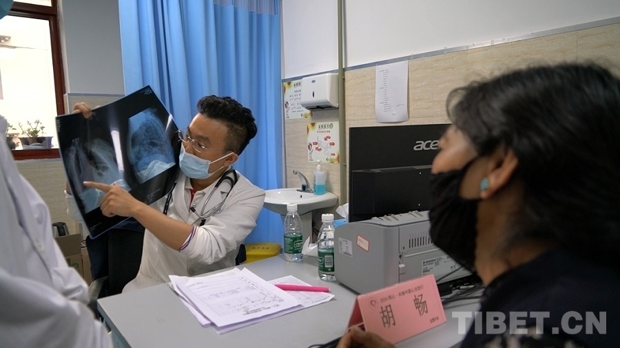 圖為胡暢為患者做檢查 攝影:周晴晴