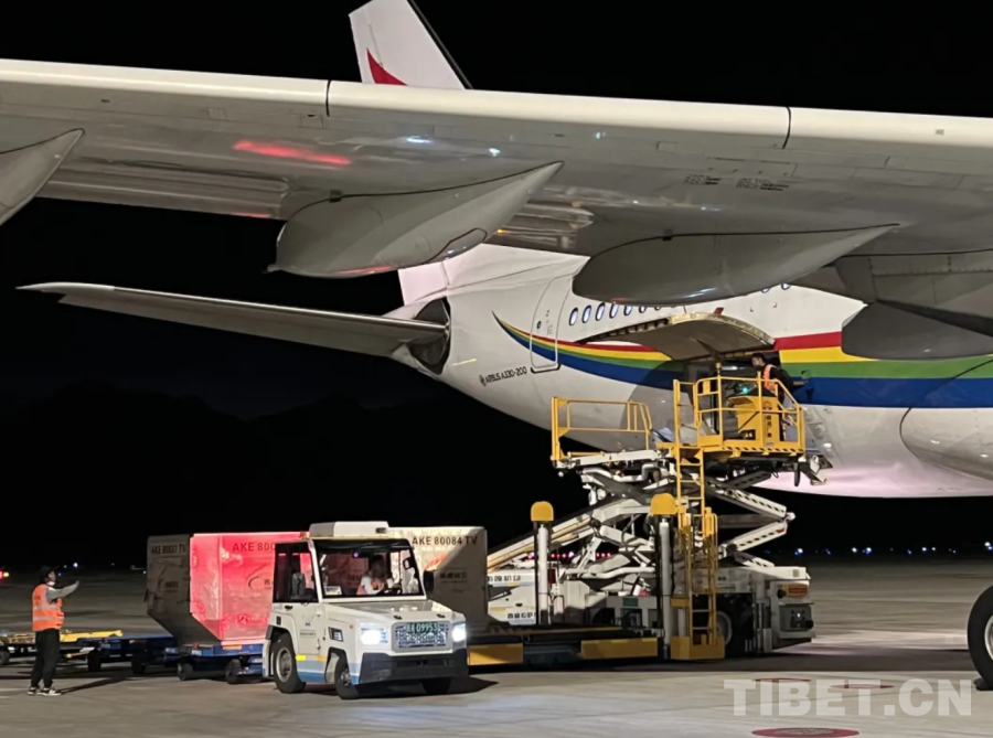 圖為拉薩貢嘎國際機(jī)場夜間保障現(xiàn)場