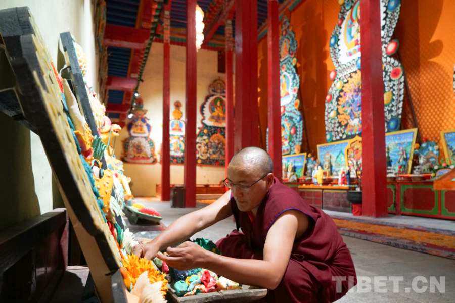 鮮花易逝但酥油花長(zhǎng)久,瓊科寺僧人通過指尖上的酥油花作品,弘揚(yáng)了藏傳佛教愛國愛教的優(yōu)良傳統(tǒng),讓西藏優(yōu)秀傳統(tǒng)文化在新時(shí)代煥發(fā)新光彩。(中國西藏網(wǎng) 記者/王淑 趙振宇)