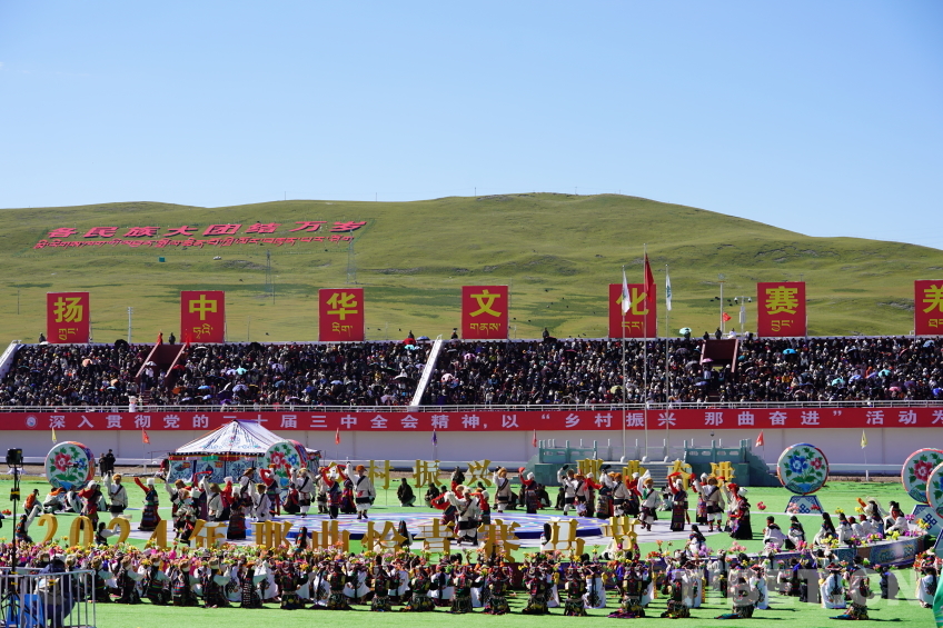 圖為2024年那曲恰青賽馬節(jié)暨第三屆“鄉(xiāng)村振興那曲奮進”活動開幕式現(xiàn)場 攝影:王淑