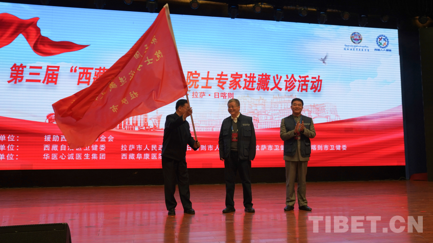 圖為第三屆“西藏人人健康”院士專家進(jìn)藏義診活動(dòng)啟動(dòng)儀式授旗現(xiàn)場 攝影:王淑
