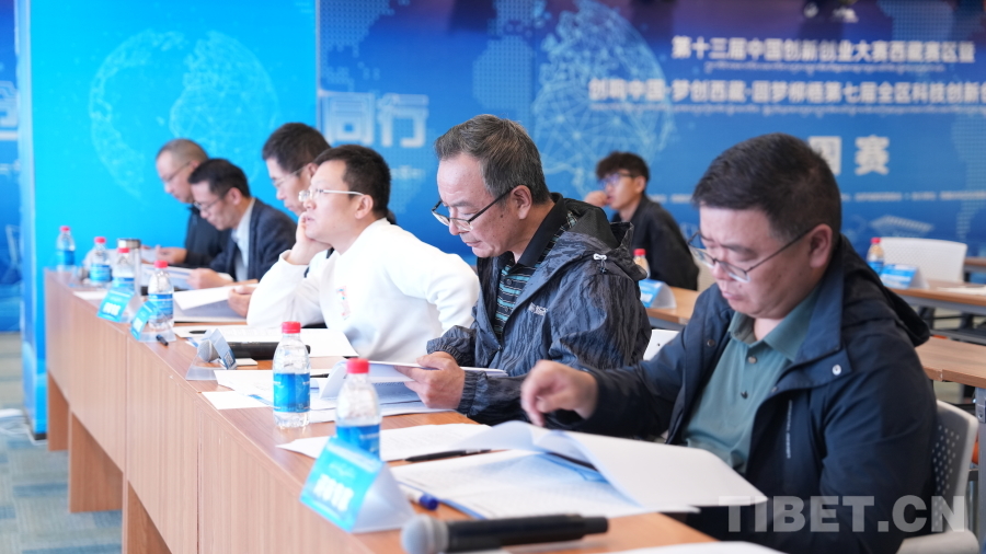 圖為專家評(píng)審閱讀參賽者項(xiàng)目資料 攝影:德吉卓瑪