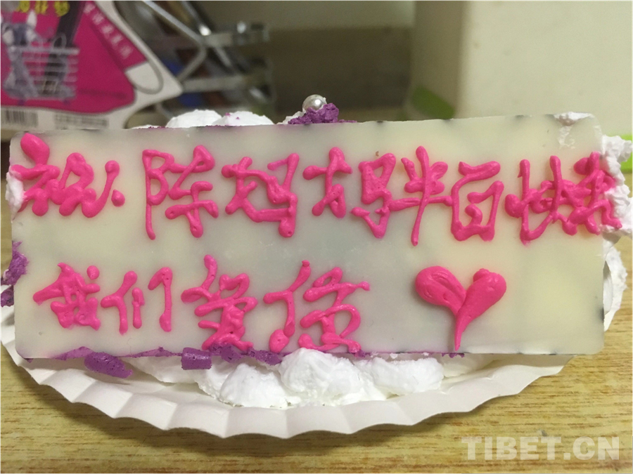 圖為同學(xué)們?cè)诮o陳英姿老師的生日蛋糕上寫下祝福