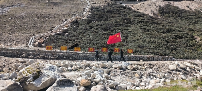 圖為拉康邊境派出所民警在邊境巡邏 圖由林路遙提供