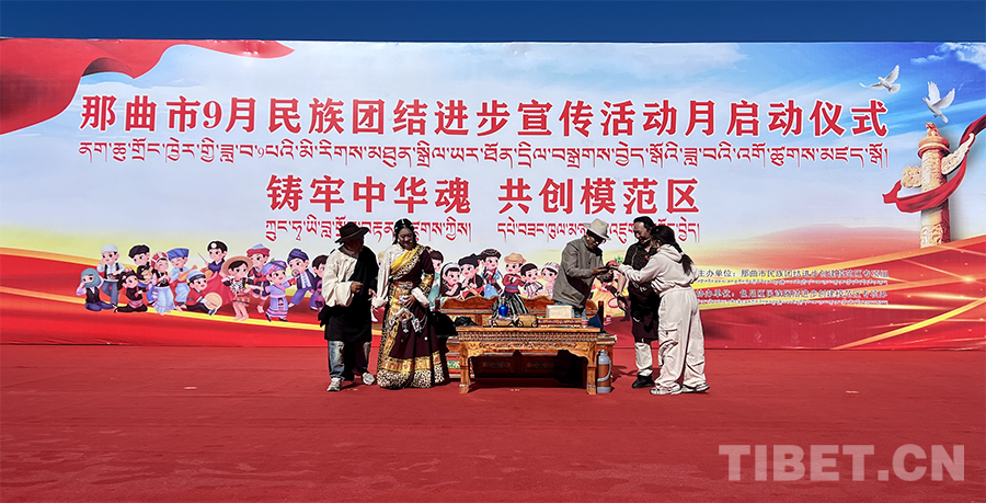 啟動儀式結(jié)束后,色尼區(qū)文藝團(tuán)為現(xiàn)場觀眾獻(xiàn)上了那曲市民族團(tuán)結(jié)進(jìn)步主題歌曲《我們的和美羌塘》《羌塘普古》《國旗下的牧民》等一系列精彩的文藝表演。其中,《羌塘普古》以其別具特色的藏族舞蹈,展現(xiàn)了那曲高原的壯麗與人民的豪邁;小品《中華民族一家親》通過生動的故事情節(jié)和真摯的情感表達(dá),深刻詮釋了中華民族多元一體的文化內(nèi)涵和各民族之間血濃于水的深厚情誼?,F(xiàn)場笑聲不斷、氣氛活躍、熱鬧非凡,充分展示了那曲市民族團(tuán)結(jié)進(jìn)步的良好氛圍。(中國西藏網(wǎng) 記者/楊加才讓 旦曲)