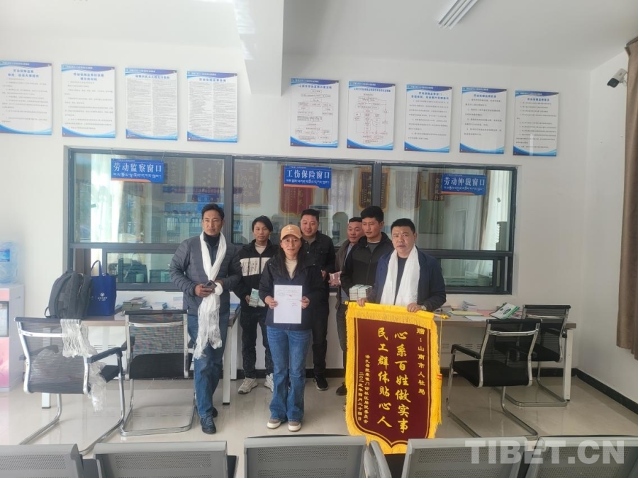 圖為山南市人社局為農(nóng)民工追回血汗錢,獲贈群眾錦旗