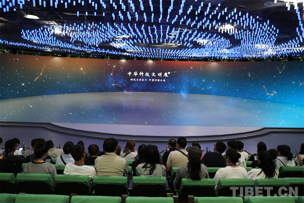 圖為西藏自治區(qū)科技專干進(jìn)京考察學(xué)習(xí)團(tuán)參觀中國(guó)科學(xué)家博物館,觀看中華科技文明展短片 攝影:王茜