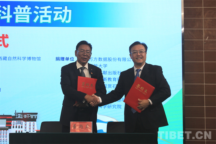 啟動儀式后,來自北京、江蘇、上海及西藏當?shù)氐?家企業(yè)和機構為計劃提供科普資源捐助。8家資源捐贈方代表與受贈方西藏自然科學博物館分別簽訂捐贈協(xié)議。