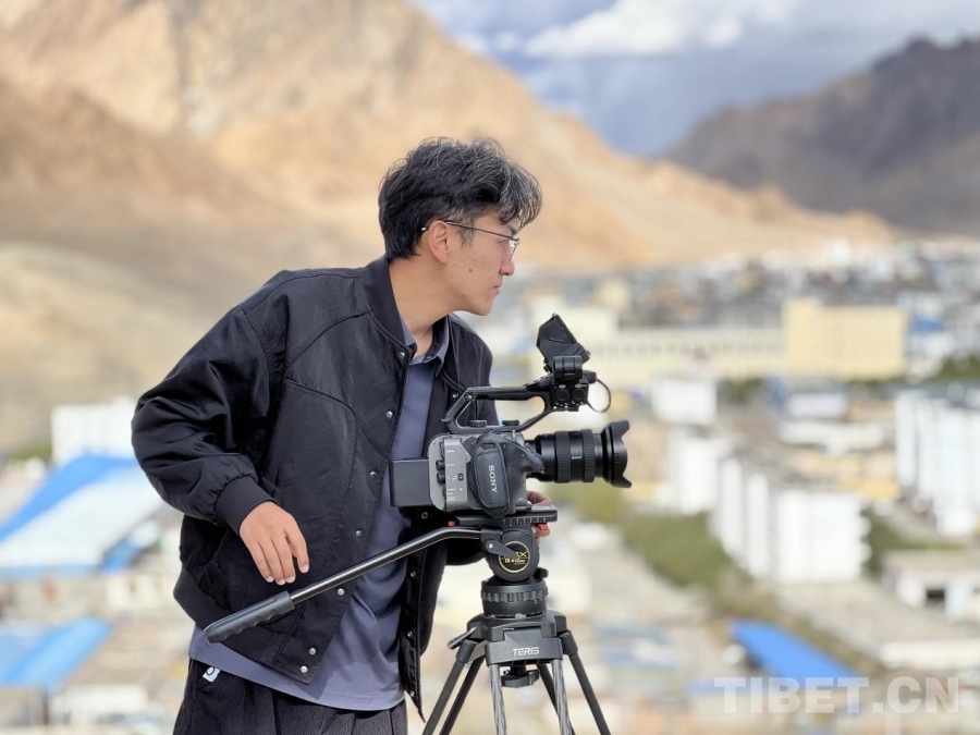 圖為羅布捌拔在拍攝獅泉河景觀 受訪者供圖