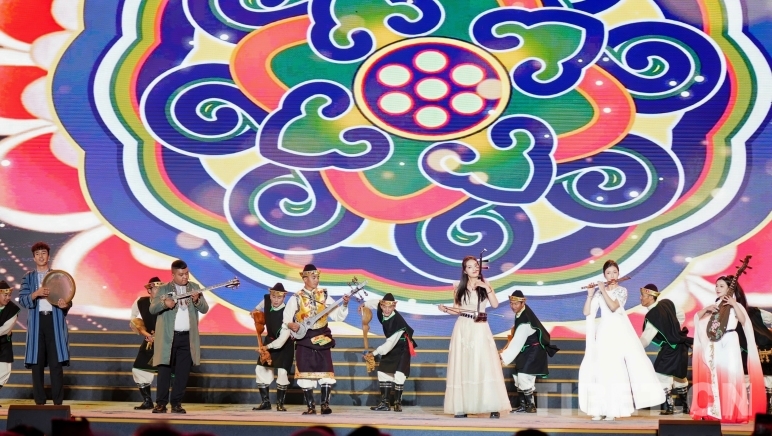 在“爭(zhēng)奇斗妍”篇中,珞巴族口弦、蒙古族馬頭琴,以及二胡、琵琶、竹笛等組成的新民樂(lè)組合輪番上演。由新疆喀什、和田的藝術(shù)家們帶來(lái)的、入選聯(lián)合國(guó)教科文組織“人類(lèi)口頭和非物質(zhì)遺產(chǎn)代表作”名錄的新疆維吾爾木卡姆藝術(shù)更是讓現(xiàn)場(chǎng)的觀眾耳目一新。在篇章的結(jié)尾,由各民族演奏者們共同演繹的工布民歌,將現(xiàn)場(chǎng)氣氛推向高潮,也讓民族間的交往交流交融在所有人心中留下了具象、生動(dòng)的畫(huà)面。