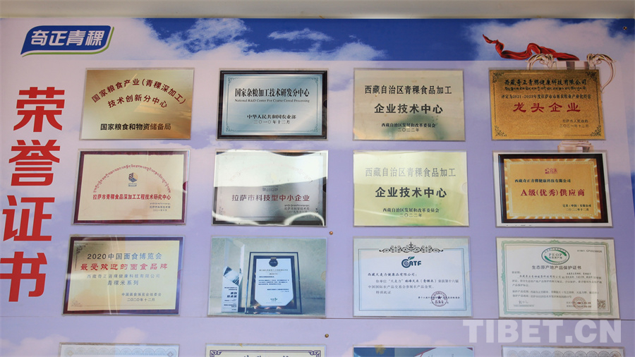 圖為奇正青稞獲得的部分榮譽(yù) 攝影:馮重霖