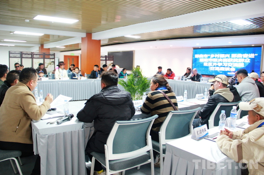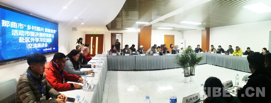 圖為10月22日,來(lái)自西藏自治區(qū)那曲市第三屆“鄉(xiāng)村振興 那曲奮進(jìn)”活動(dòng)市級(jí)決賽第一名獲獎(jiǎng)群眾代表區(qū)外學(xué)習(xí)交流團(tuán)抵達(dá)住地后,與中國(guó)藏學(xué)研究中心專家們進(jìn)行交流座談 攝影:劉莉