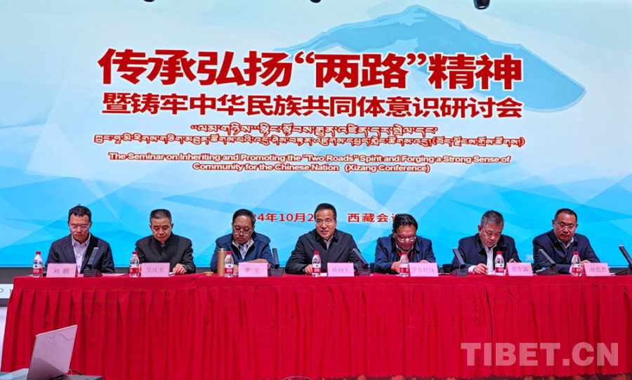 中國西藏網(wǎng)訊 10月24日,傳承弘揚“兩路”精神暨鑄牢中華民族共同體意識研討會在西藏自治區(qū)拉薩市開幕。此次研討會由中國西藏信息中心、西藏延安精神研究會主辦,西藏自治區(qū)社會科學(xué)院、西藏技師學(xué)院協(xié)辦。來自西藏自治區(qū)黨委、西藏社科院、中國藏學(xué)研究中心、西藏大學(xué)、青海民族大學(xué)等單位的相關(guān)負(fù)責(zé)人、專家學(xué)者及西藏技師學(xué)院師生300余人參加了開幕式。(中國西藏網(wǎng) 記者/王茜 陳浩力 巫姍燕 蘭周加)