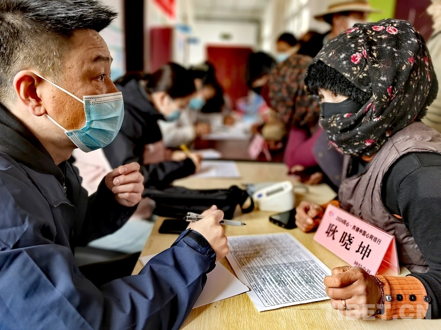 圖為航天總醫(yī)院內(nèi)分泌科專家沈巾然為當(dāng)?shù)厝罕娍丛\ 攝影:賈春玲