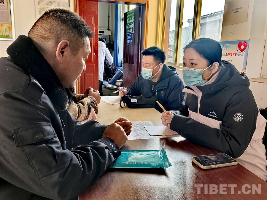 圖為當(dāng)?shù)蒯t(yī)護(hù)人員為群眾現(xiàn)場翻譯 攝影:賈春玲