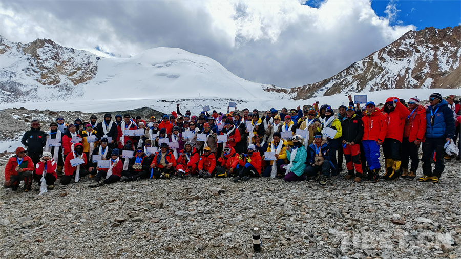 圖為2024第二十一屆中國(guó)西藏登山大會(huì)西藏民族大學(xué)部分師生登頂洛堆峰后合影留念,左四為楊建軍教授 攝影:馮重霖