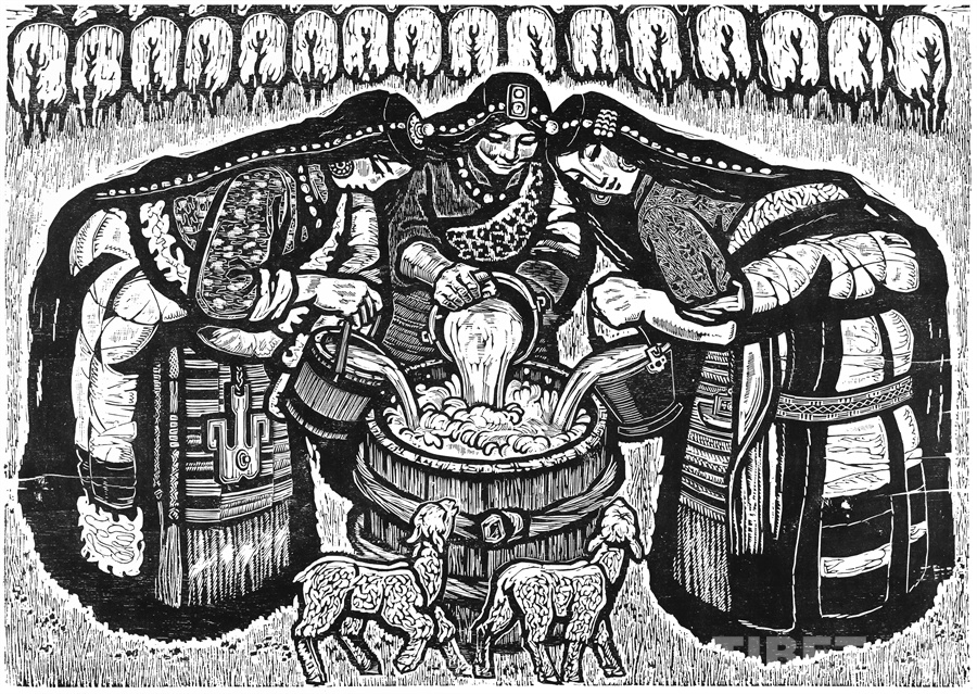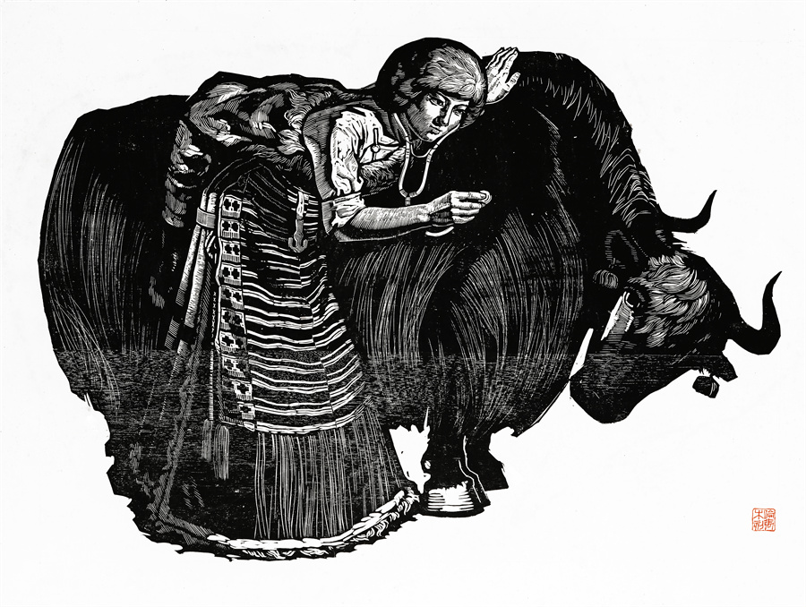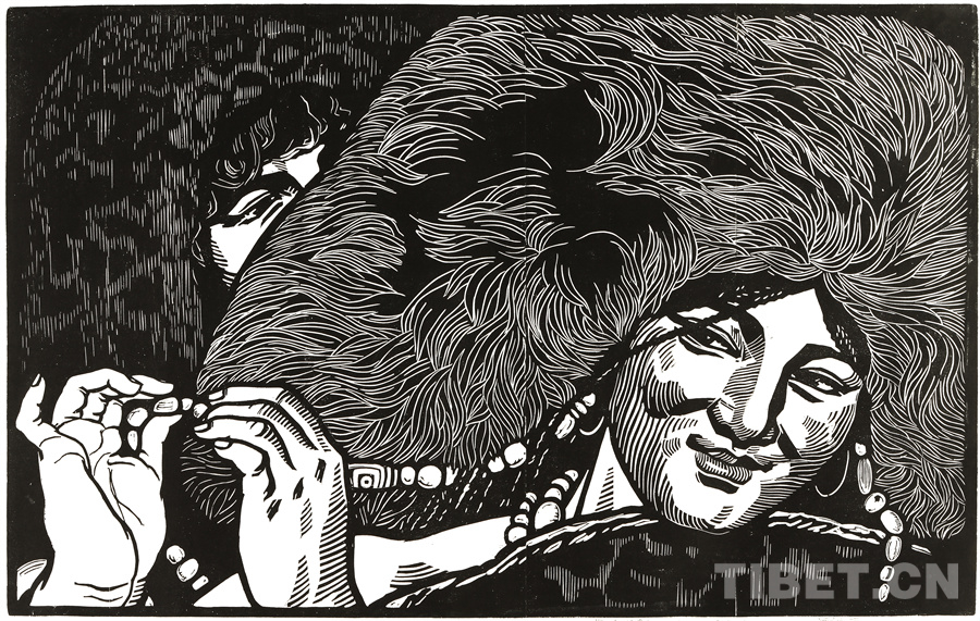這些年來可以肯定的是我的創(chuàng)作道路和方向是基本對頭的。前幾年有人寫文章評論說,在外來思想影響已很豐富、多元化格局已經(jīng)形成的情況下,差不多只有版畫還恪守著現(xiàn)實主義的創(chuàng)作道路,而且在美術(shù)領(lǐng)域起到了導(dǎo)向作用。順便為版畫說句話:搞版畫的人一直尊重生活,認(rèn)定生活是第一性的,版畫一開始就是在革命的環(huán)境中發(fā)生、發(fā)展起來的。版畫隨著四大發(fā)明發(fā)源于中國的土壤,后來被歐洲發(fā)展了,反過來又影響到中國。老大的中國有發(fā)明權(quán),但并沒有把它發(fā)展起來。魯迅先生為了推動版畫的發(fā)展,特別介紹了德國版畫和俄羅斯版畫為代表的版畫代表作和代表人物,還有美國的肯特,比利時的麥綏萊爾。介紹文字很精彩,無論對生平、對作品的介紹都很精彩。他推出的那些版畫大師,至今仍巍然屹立在美術(shù)史上。他對版畫的深刻而獨到的理解很可貴。國外有些不很知名但有好作品的,他也介紹到。而且給我們指出哪些是范本,我們一看果然耳目一新。魯迅先生的提倡影響了中國版畫的發(fā)展,進(jìn)入了一個嶄新的階段,形成所謂新興版畫。這段時間并不長,也就六七十年吧。版畫統(tǒng)領(lǐng)潮流,面向生活的潮流。所以它的路子就很正,這個正就是正統(tǒng),一直發(fā)展得很健康。我從小就受影響,我當(dāng)時所看到的版畫都是反映民間生活的東西:戰(zhàn)爭年代反映民間的疾苦與災(zāi)難,和平年代反映民眾的感情和生活,所表現(xiàn)的風(fēng)景也由平常人眼中投射。一句話就是為人民服務(wù)指導(dǎo)下的藝術(shù)創(chuàng)作。如果問我的作品和生活的距離有多大,可說距離是小的,并未受到更多潮流的干擾,并未背離為人民服務(wù)的方向。正因如此,我要把西藏題材表現(xiàn)好,表現(xiàn)在一個理想的藝術(shù)高度上,而且這一高度還能讓一般欣賞者達(dá)到。我的理想就是這樣,要達(dá)到這一目標(biāo)看來還很費勁。