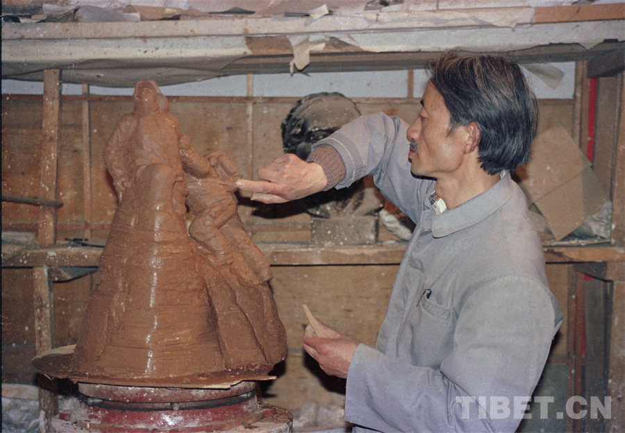 緊接著到來的六十年代,我的主要工作是畫主席像,雕塑主席像??梢哉f,我的雕塑藝術(shù)是從那時開始的。此前雖然也做過一些,但當(dāng)軍管會要求我為自治區(qū)革委會的成立塑一尊大像時,我壯起膽子申請去北京學(xué)習(xí)石膏翻模。經(jīng)軍管會批準(zhǔn),拉薩警備區(qū)司令簽字,買了機(jī)票去北京,一學(xué)就是五個月。