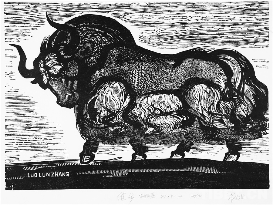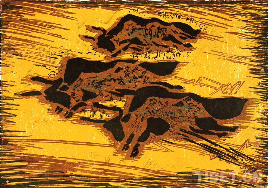 如果非要說我在版畫技法上有什么創(chuàng)新,參照西藏匠人刻經(jīng)文,在石頭上刻出來然后印出來也許就算。這不是一般石版畫概念,那叫石印,平版印刷;我這是凹版印刷。刻起來很費勁,我也不管費不費勁。我有一批這樣的石刻作品。綜合版作品手法較多,我通常分別在石板和木板上刻,然后套起來印。如果搞學(xué)術(shù)交流,也許值得一談。至于說到創(chuàng)新,第一我不認(rèn)為我有什么創(chuàng)新,第二我不認(rèn)為在藝術(shù)上、在美術(shù)上能夠輕易談創(chuàng)新這個詞。還有第三個觀點:不需要創(chuàng)新。很簡單,你先把傳統(tǒng)學(xué)到手再說。既是傳統(tǒng),就有它的存在理由,否則早就夭折了,還傳什么統(tǒng)呢?傳,而且統(tǒng)?。〗y(tǒng)是什么意思?基調(diào)是它統(tǒng)一起來的。先把傳統(tǒng)學(xué)到手,爐火純青了,神來之筆出現(xiàn)了,才有可能有所創(chuàng)造?;A(chǔ)是重要的。