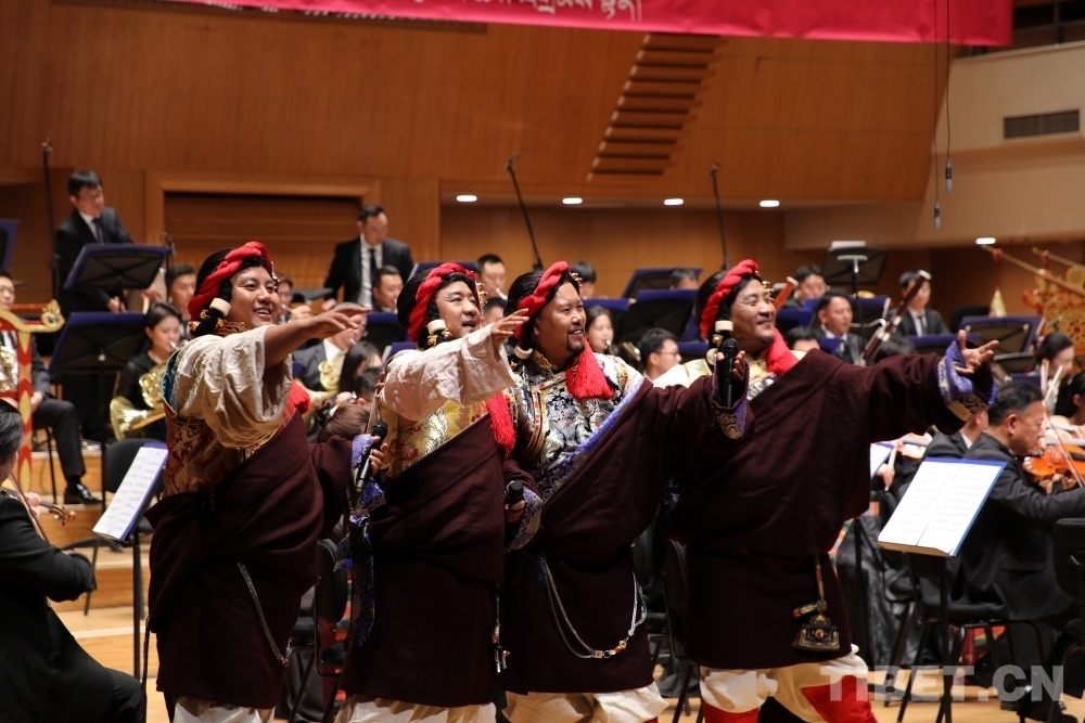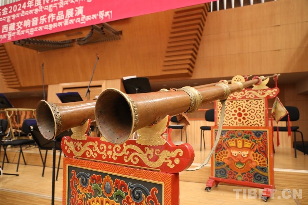 演出展示了合奏、協(xié)奏、獨(dú)奏等多種演奏形式,還加入了西藏傳統(tǒng)樂器演奏,如扎木念、藏大號等藏族傳統(tǒng)樂器,依托原創(chuàng)音樂、紅色音樂,既保留了西藏音樂的風(fēng)格,又融入了現(xiàn)代音樂的元素,展現(xiàn)了西藏音樂的多元性和創(chuàng)新性以及交響樂的豐富表現(xiàn)力。