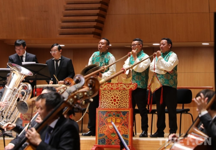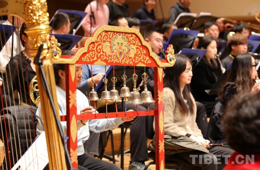 “我們交響樂當中使用了不少民族樂器,有藏族的傳統(tǒng)樂器藏大號、藏鈸、扎木念、赤布(藏鈴),也有二胡、鼓、笛等等,這也使得作品跟其他樂團不一樣?!蹦岈斦f,“交響樂有了民族樂器的加入,這種中西結(jié)合讓作品國際范兒中有了民族風味,這也是我們所做的一些創(chuàng)新和融合,也展現(xiàn)了西藏音樂特有的魅力。”