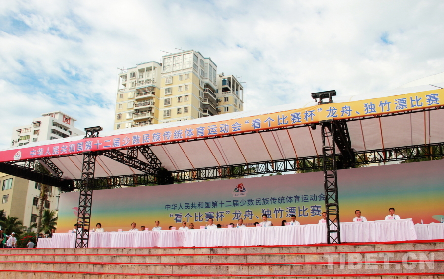 中國(guó)西藏網(wǎng)訊 11月23日,第十二屆全國(guó)少數(shù)民族傳統(tǒng)體育運(yùn)動(dòng)會(huì)(以下簡(jiǎn)稱運(yùn)動(dòng)會(huì))龍舟項(xiàng)目在海南省三亞市三亞河開賽。