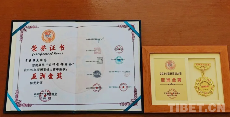 圖為獲獎(jiǎng)證書及獎(jiǎng)牌 圖源:西藏日?qǐng)?bào)